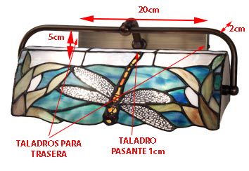 Pantalla Tiffany colores azules ancho 32cm alto 12cm.