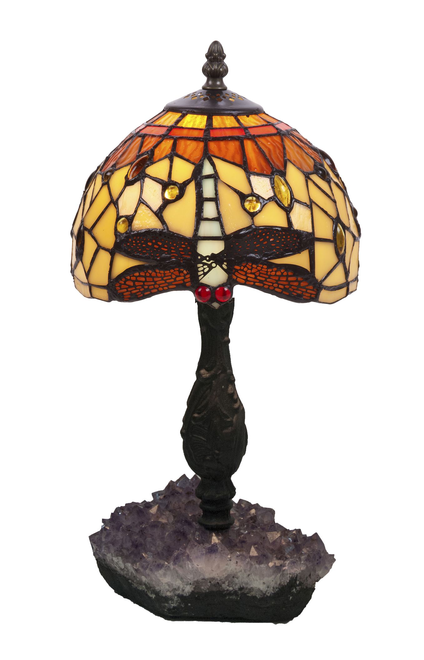d.20cm Lámpara de mesa con libélulas ambar Tiffany y montura amavista Serie Belle Amber 1 luz