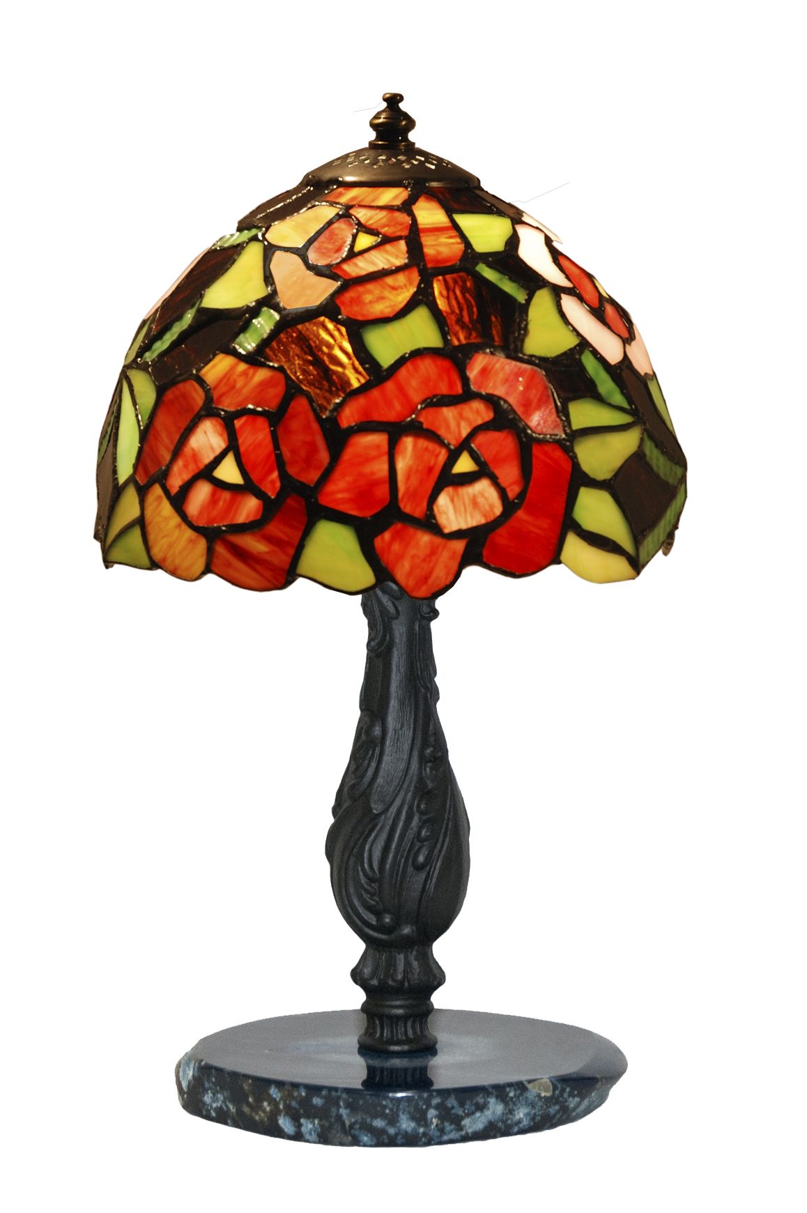 Clásicas pantalla estilo Tiffany con tema floral con base en piedra semi-preciosa agata azul con certificado de reproducción del original numerado y montura para sobremesa. ATENCIÓN la piedra agata varia de la fotografía, son auténticas y siempre distintas aunque parecidas a la muestra de la foto. Ref.2478.74* D.20cm