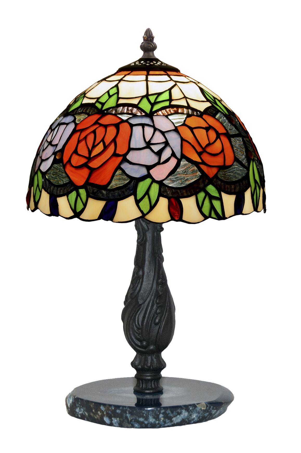 Clásicas pantalla estilo Tiffany con tema floral con base en piedra semi-preciosa agata azul con certificado de reproducción del original numerado y montura para sobremesa. ATENCIÓN la piedra agata varia de la fotografía, son auténticas y siempre distintas aunque parecidas a la muestra de la foto. Ref.2838.74* D.20cm