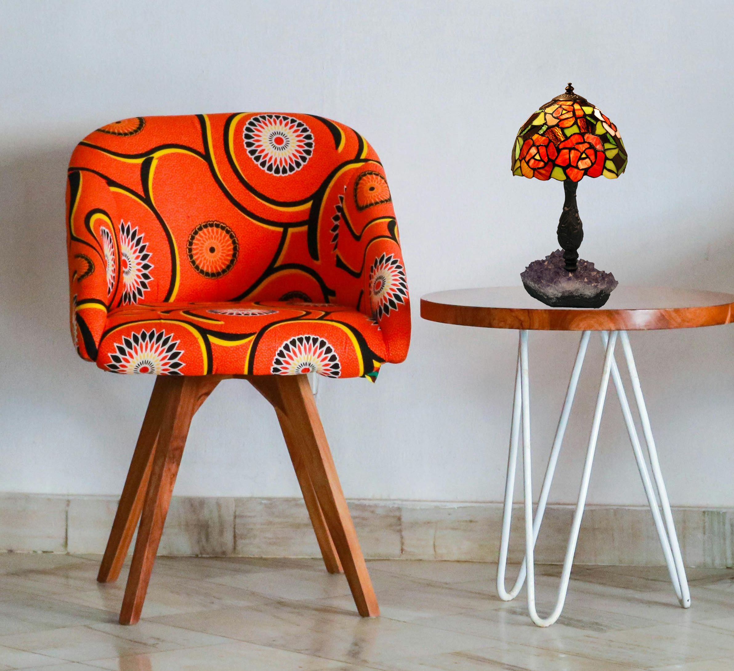 Clásicas pantalla estilo Tiffany con tema floral con base en piedra semi-preciosa amatista con certificado de reproducción del original numerado y montura para sobremesa. ATENCIÓN la piedra amatista varia de la fotografía, son auténticas y siempre distintas aunque parecidas a la muestra de la foto. Ref.2478.79* D.20cm