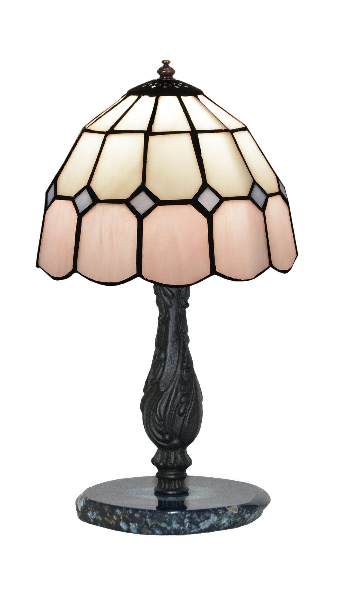 Clásicas pantalla estilo Tiffany con base en piedra semi-preciosa agata azul con certificado de reproducción del original numerado y montura para sobremesa. ATENCIÓN la piedra agata varia de la fotografía, son auténticas y siempre distintas aunque parecidas a la muestra de la foto. Ref.2818.74* D.20cm
