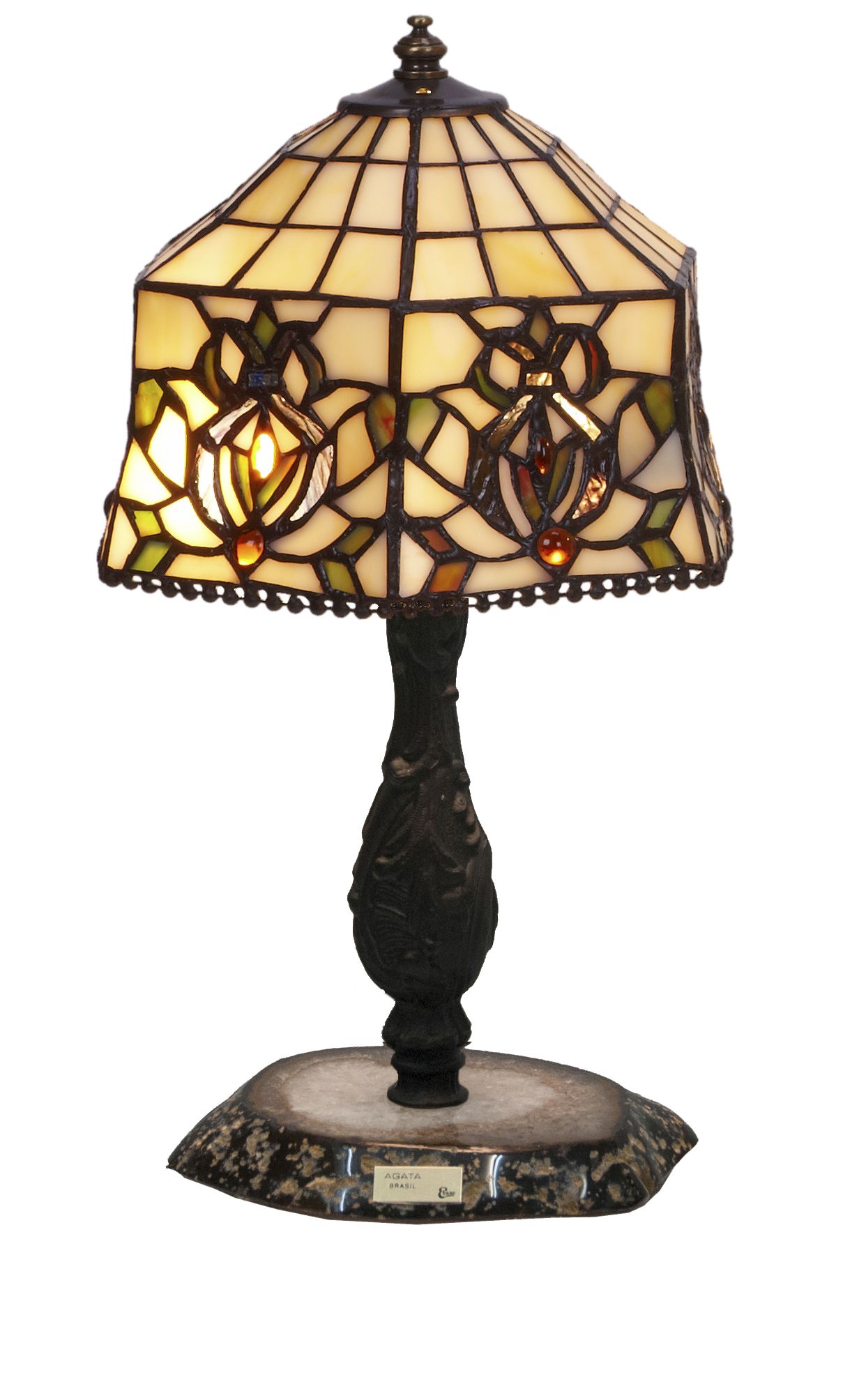 Clásicas pantalla estilo Tiffany con base en piedra semi-preciosa agata azul con certificado de reproducción del original numerado y montura para sobremesa. ATENCIÓN la piedra agata varia de la fotografía, son auténticas y siempre distintas aunque parecidas a la muestra de la foto. Ref.2428.75* D.20cm