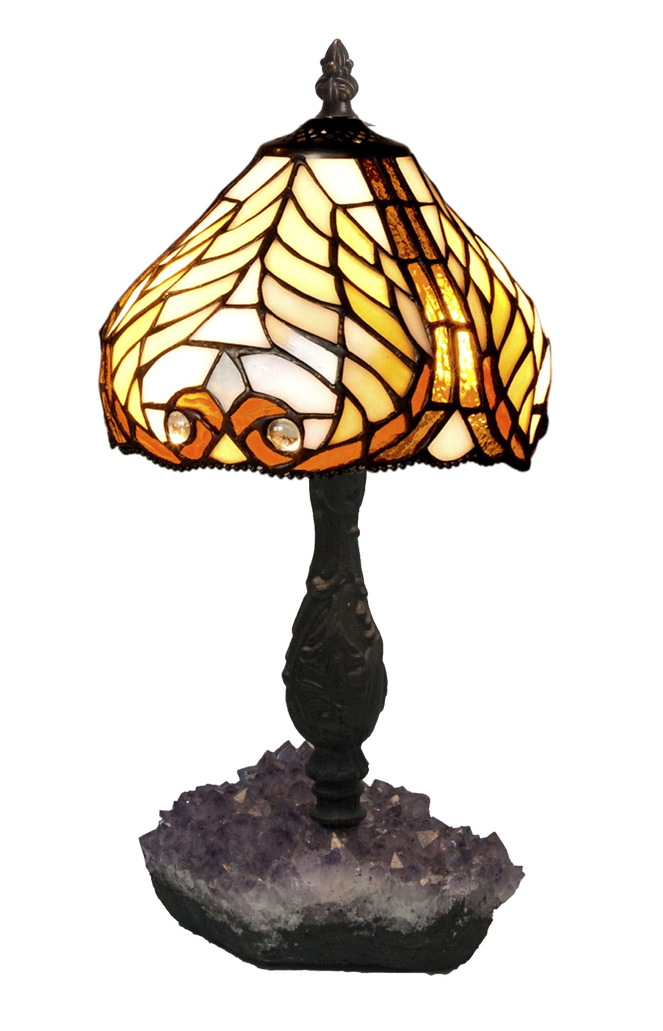 Clásicas pantalla estilo Tiffany con base en piedra semi-preciosa amavista con certificado de reproducción del original numerado y montura para sobremesa. ATENCIÓN la piedra agata varia de la fotografía, son auténticas y siempre distintas aunque parecidas a la muestra de la foto. Ref.2388.79* D.20cm