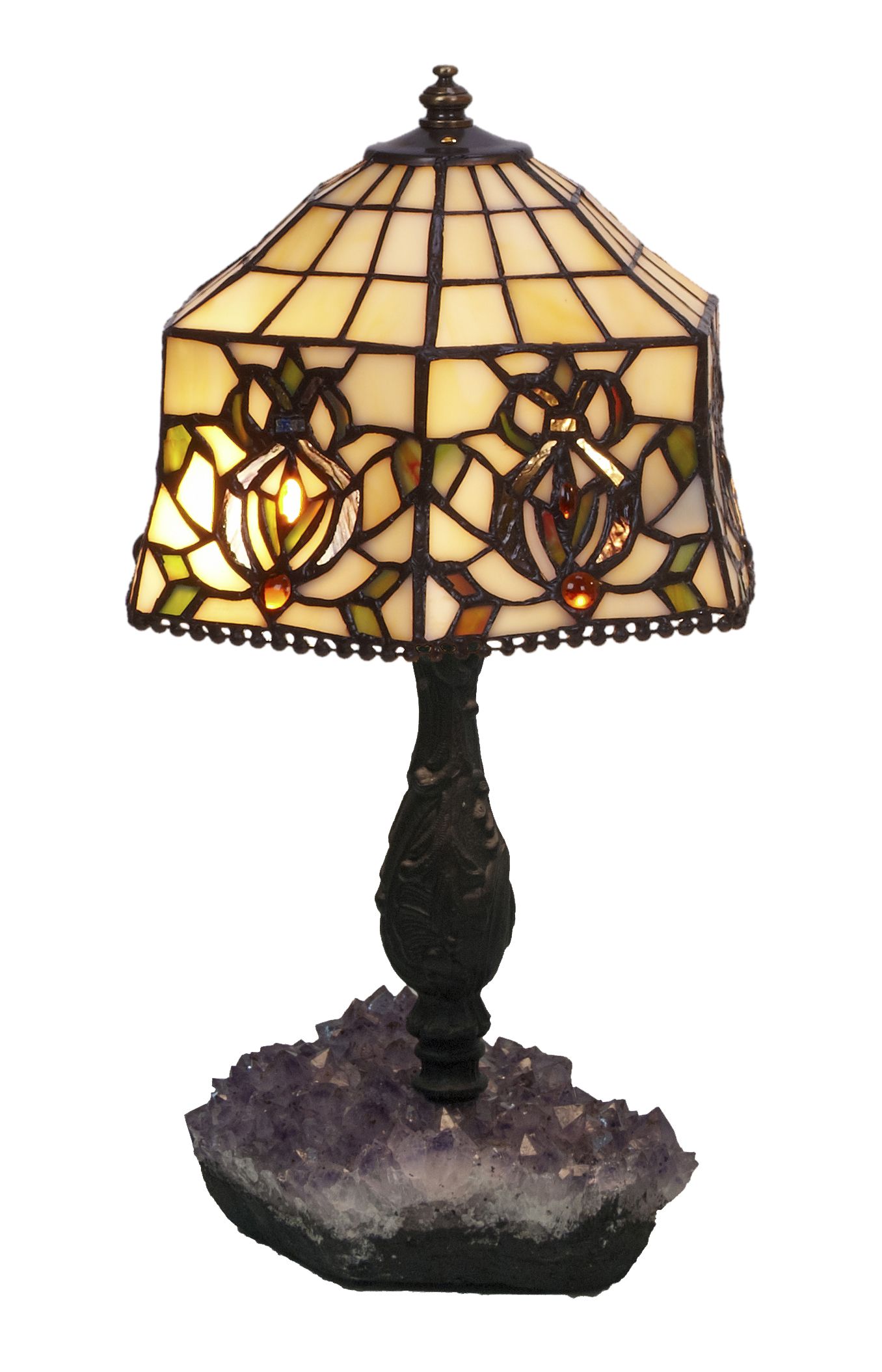 Clásicas pantalla estilo Tiffany con base en piedra semi-preciosa amavista con certificado de reproducción del original numerado y montura para sobremesa. ATENCIÓN la piedra agata varia de la fotografía, son auténticas y siempre distintas aunque parecidas a la muestra de la foto. Ref.2428.79* D.20cm