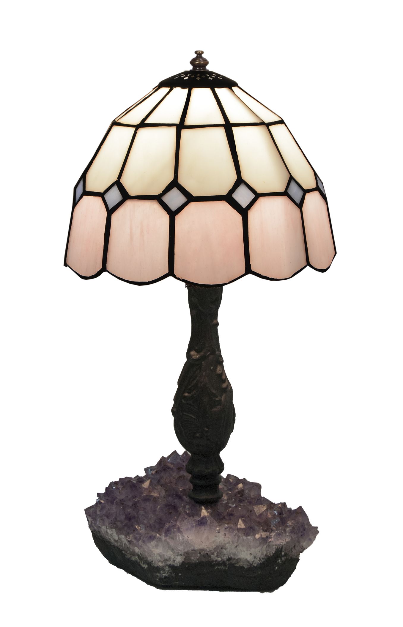 Clásicas pantalla estilo Tiffany con base en piedra semi-preciosa amavista con certificado de reproducción del original numerado y montura para sobremesa. ATENCIÓN la piedra amavista varia de la fotografía, son auténticas y siempre distintas aunque parecidas a la muestra de la foto. Ref.2818.79* D.20cm