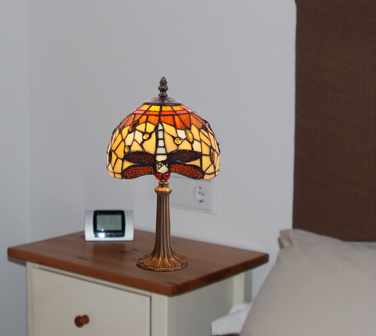 d.20cm Sobremesa Tiffany con base árbol Serie Belle Amber 1 luz