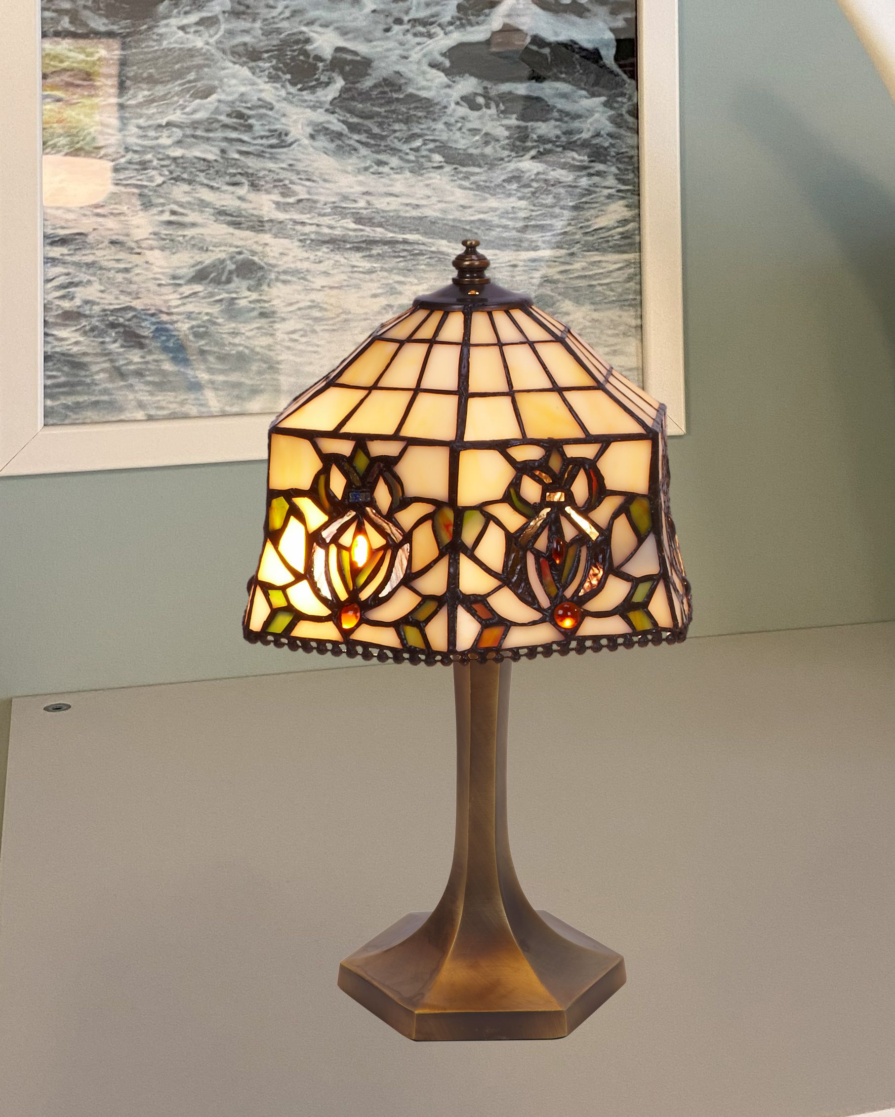 d.20cm Sobremesa Tiffany menor con base hexagonal Serie Hexa 1 luz