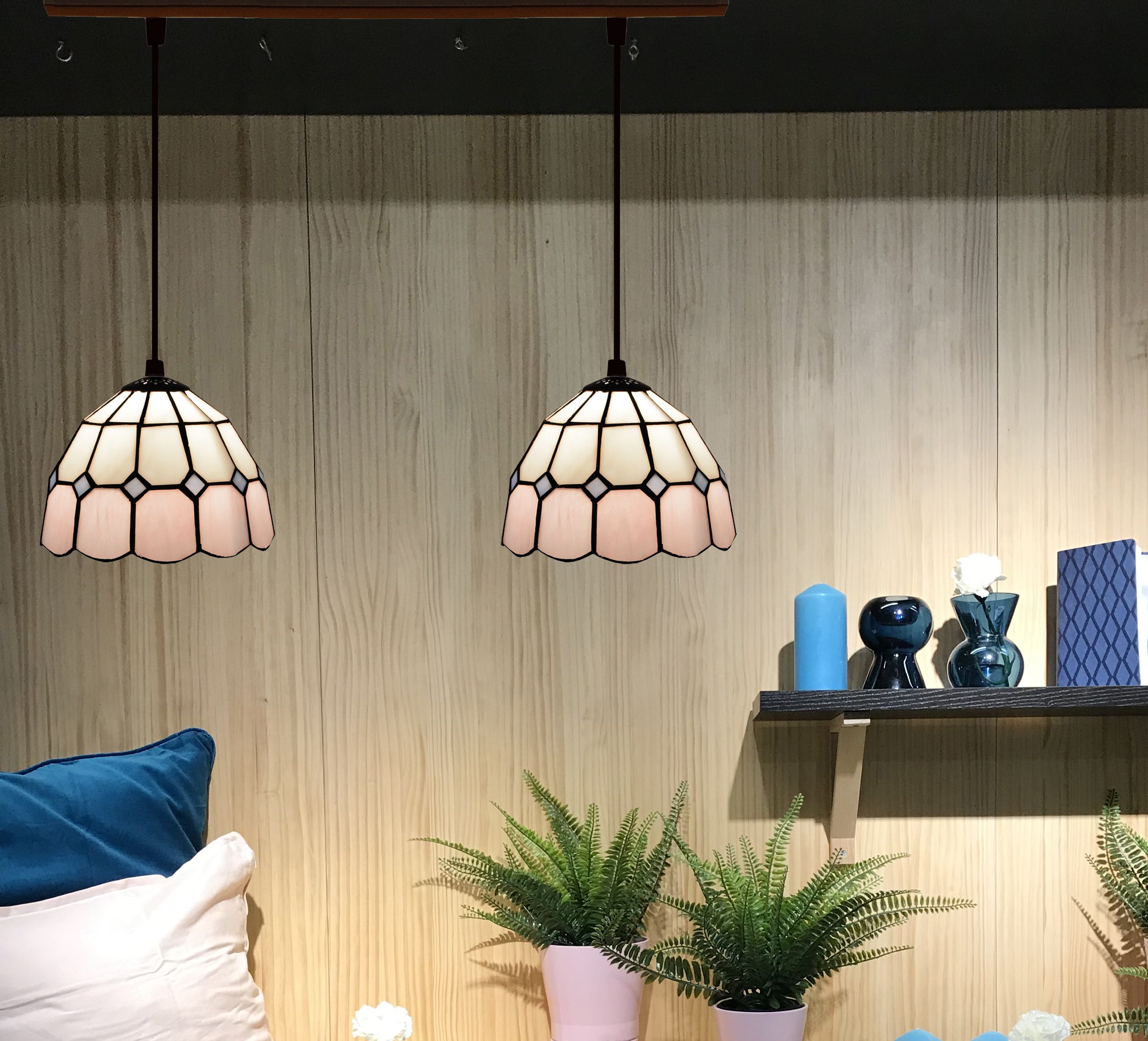 d.20cm x2 Lámpara regleta con 2 pantallas Tiffany Serie Pink