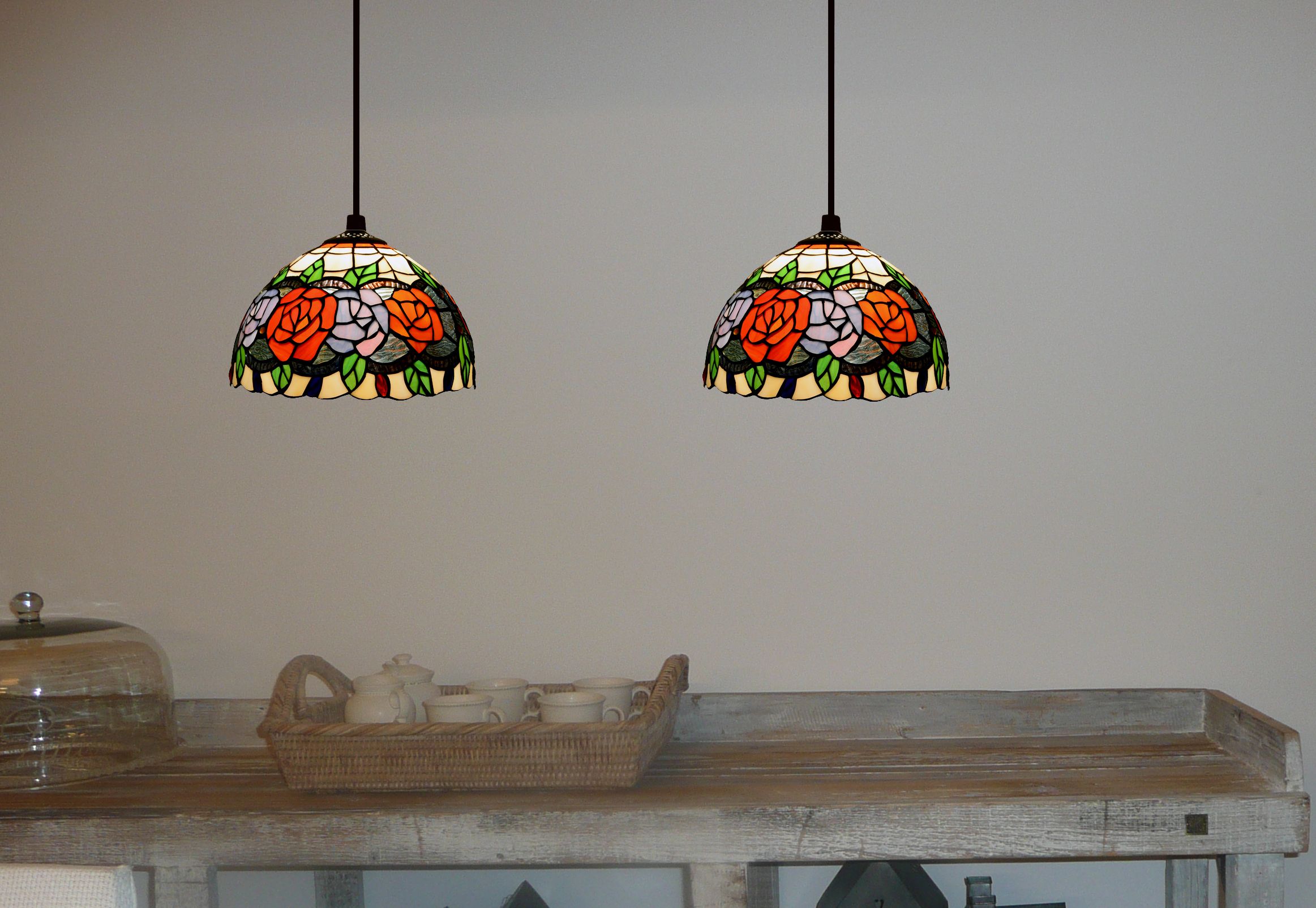 d.20cm x2 Lámpara regleta con 2 pantallas Tiffany Serie Rosy