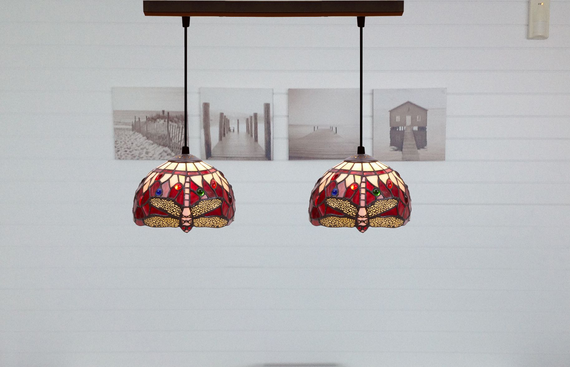 d.20cmx2 Lámpara regleta con 2 pantallas Tiffany Serie Belle Rouge