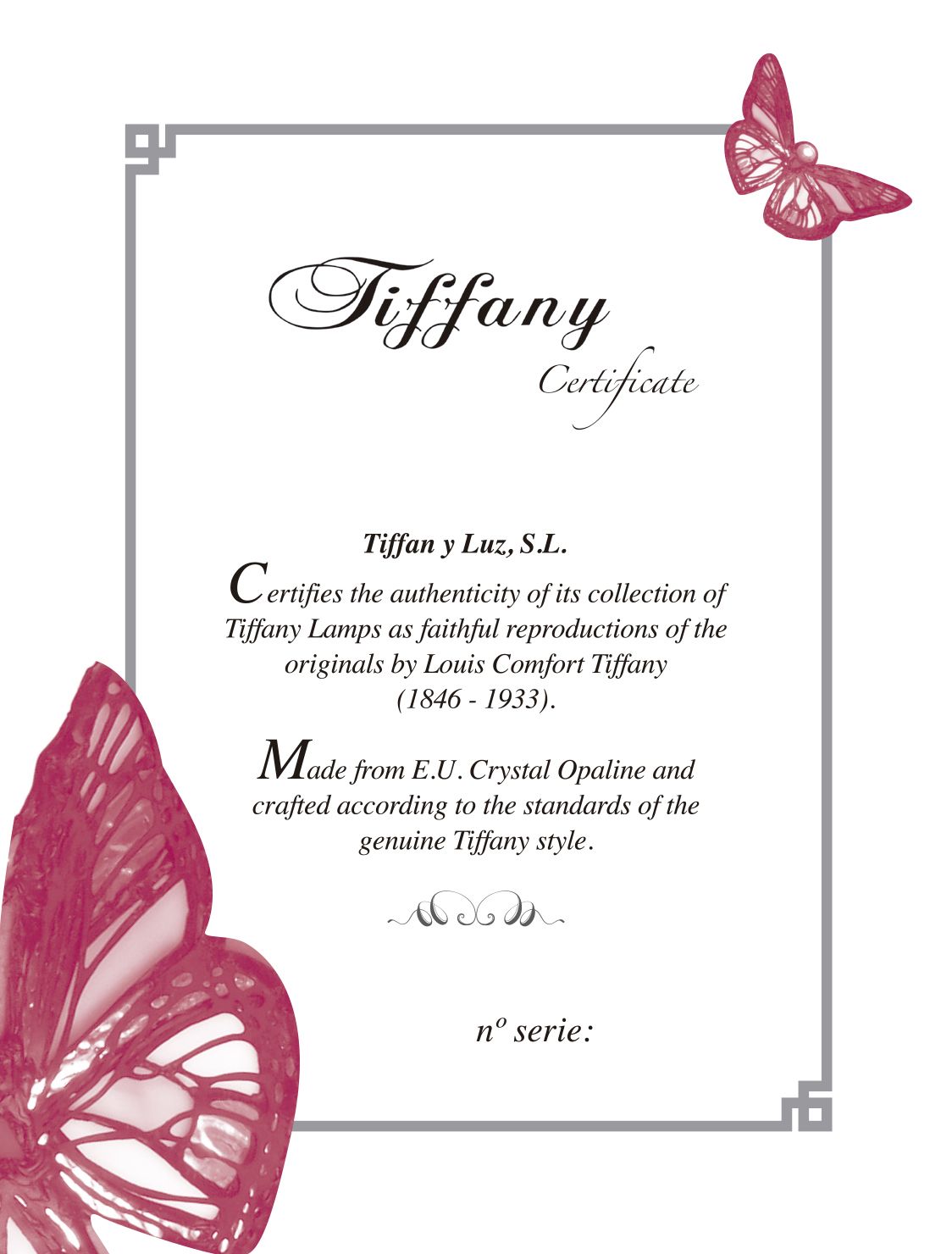 Mariposas de tonos verdes en pantalla Tiffany con certificado de reproducción del original numerado y montura sobremesa.