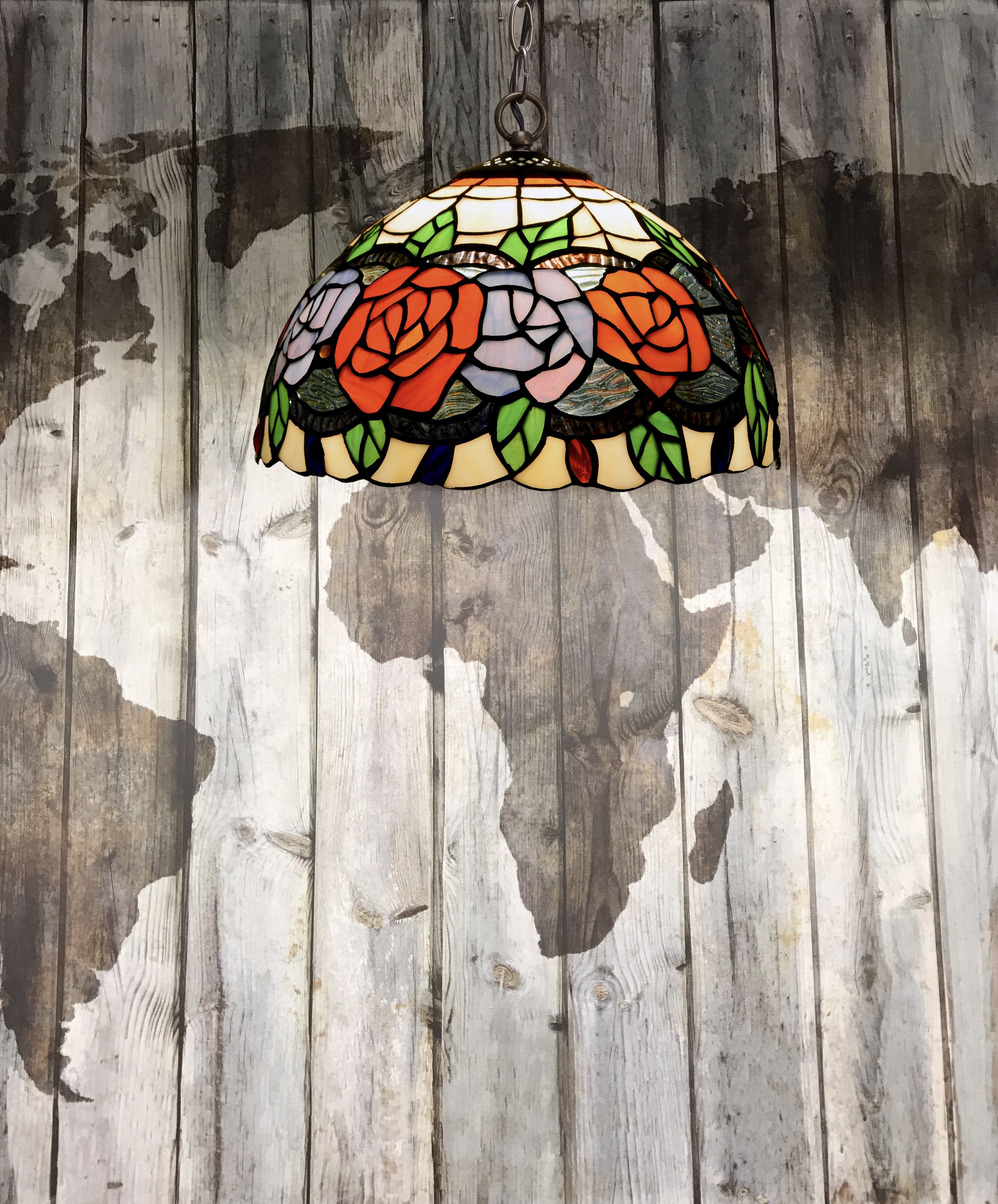 d.30cm Colgante de techo Tiffany con cadena acabado medalla