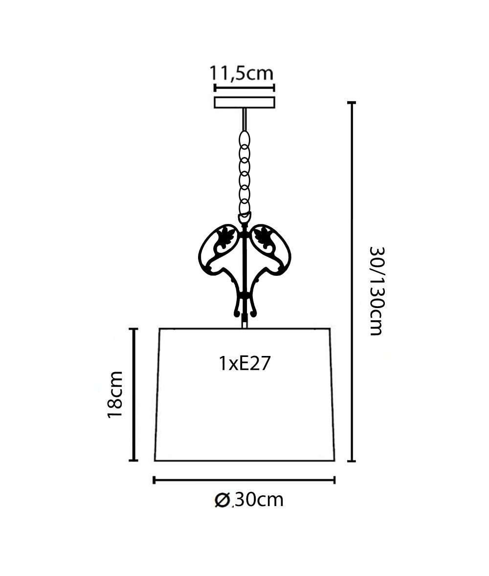 Colgante de techo con adorno fundición, montura de hierro. Altura 30/130cm.