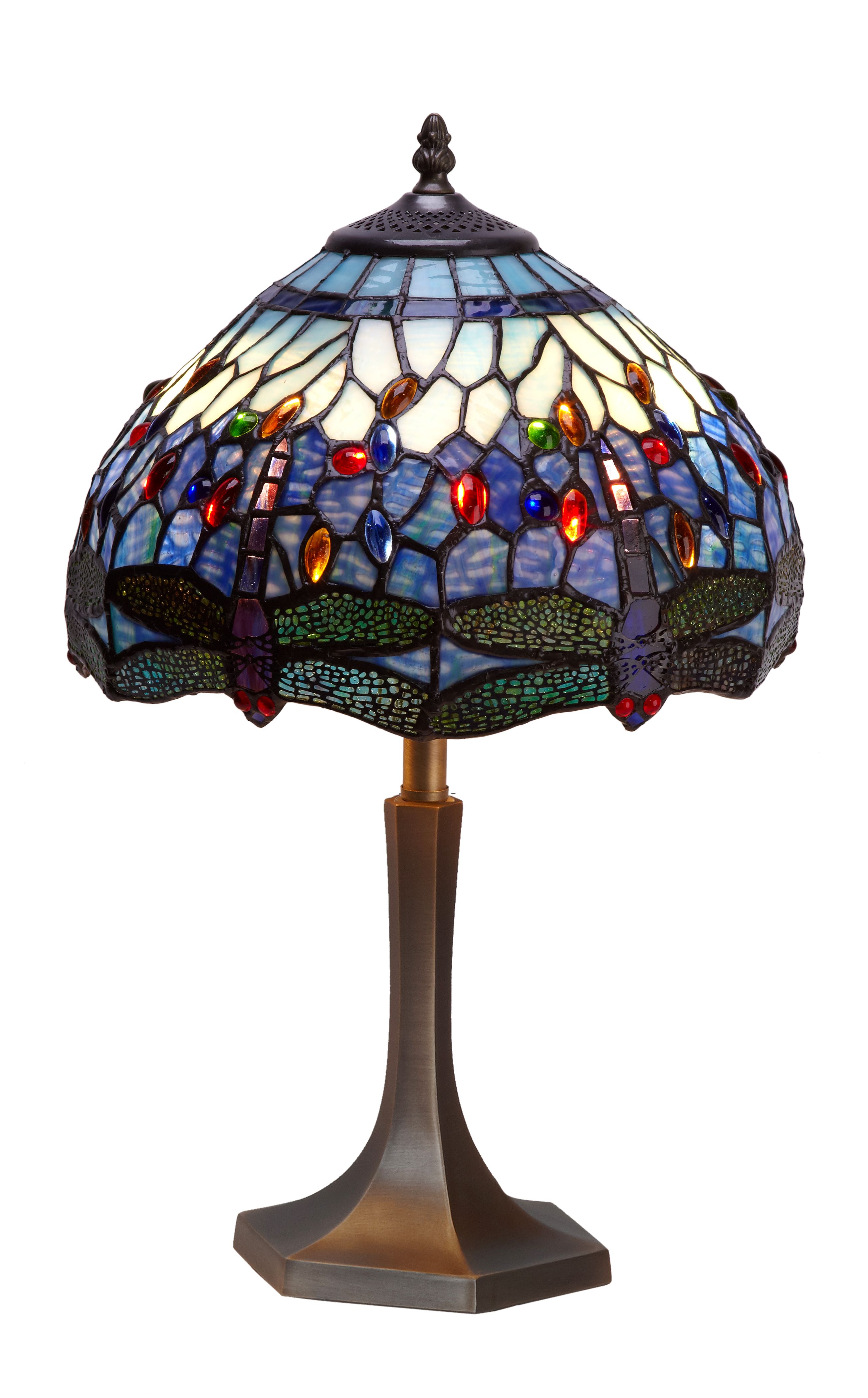Clásicas libélulas de tonos azules en pantalla estilo Tiffany azul con certificado de reproducción del original numerado y montura para sobremesa. Ref.1972.43 D.30cm