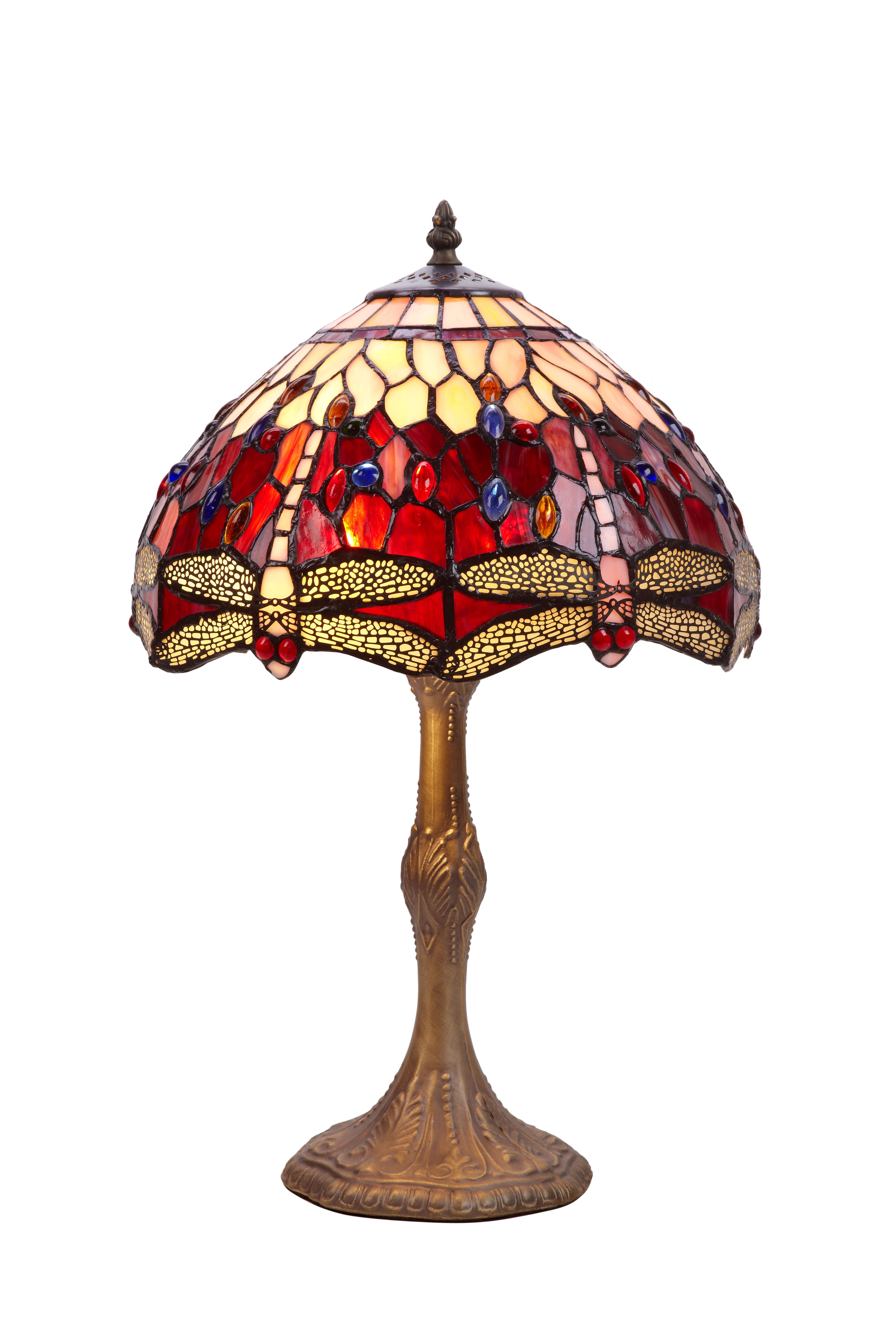 Clásicas libélulas de tonos rojos en pantalla estilo Tiffany con certificado de reproducción del original numerado y montura para sobremesa. Ref.2038.60 D.30cm