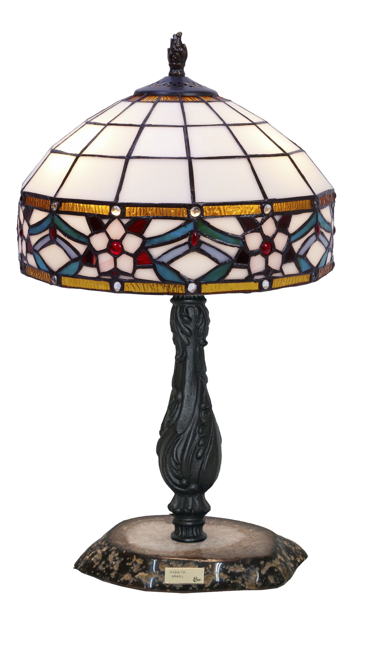 Clásicas pantalla estilo Tiffany con base en piedra semi-preciosa agata color neutro con certificado de reproducción del original numerado y montura para sobremesa. ATENCIÓN la piedra agata varia de la fotografía, son auténticas y siempre distintas aunque parecidas a la muestra de la foto. Ref.2866.65* D.30cm