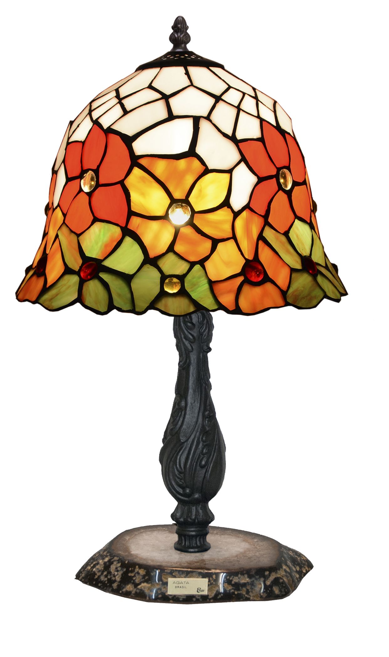 Clásicas pantalla estilo Tiffany con base en piedra semi-preciosa agata azul con certificado de reproducción del original numerado y montura para sobremesa. ATENCIÓN la piedra agata varia de la fotografía, son auténticas y siempre distintas aunque parecidas a la muestra de la foto. Ref.2826.65* D.30cm