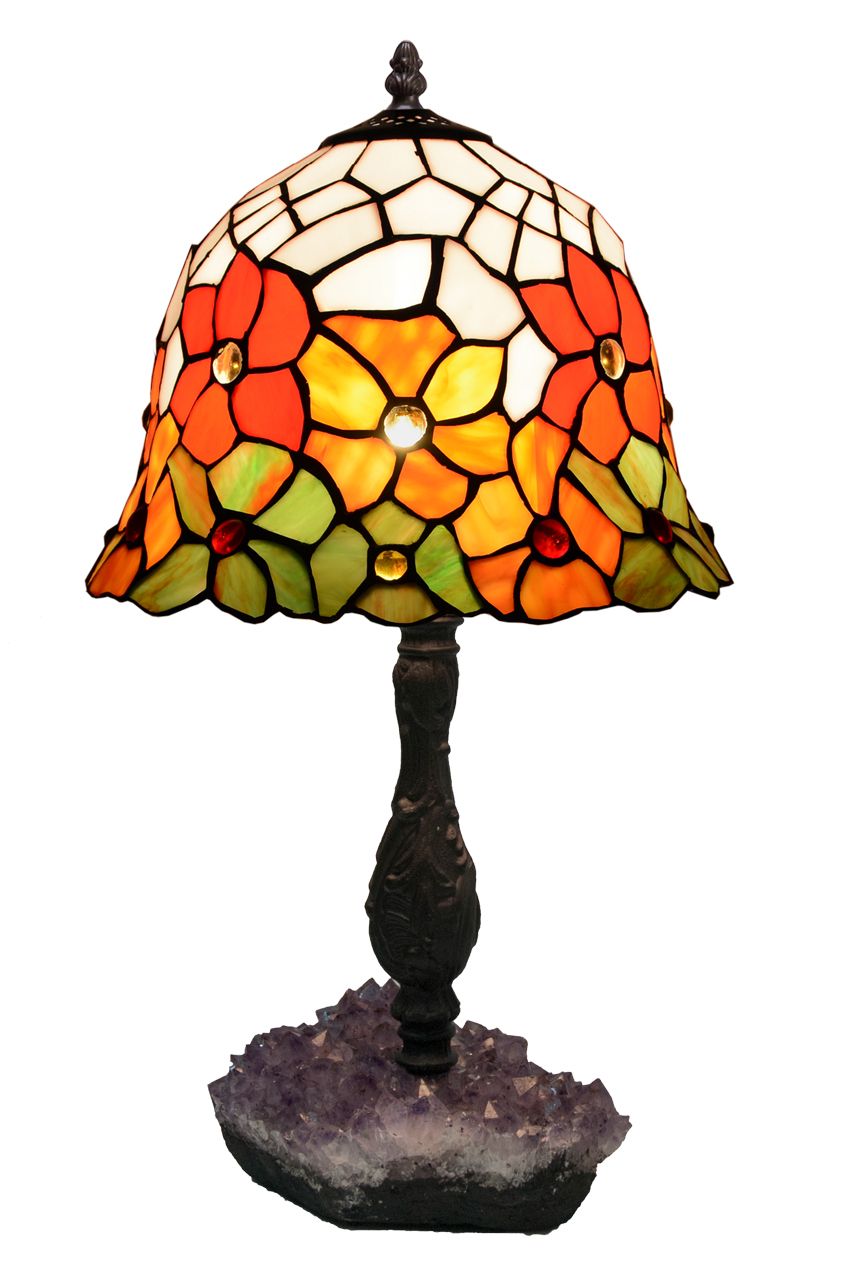 Clásicas pantalla estilo Tiffany con base en piedra semi-preciosa amatista con certificado de reproducción del original numerado y montura para sobremesa. ATENCIÓN la piedra amatista varia de la fotografía, son auténticas y siempre distintas aunque parecidas a la muestra de la foto. Ref.2826.69* D.30cm