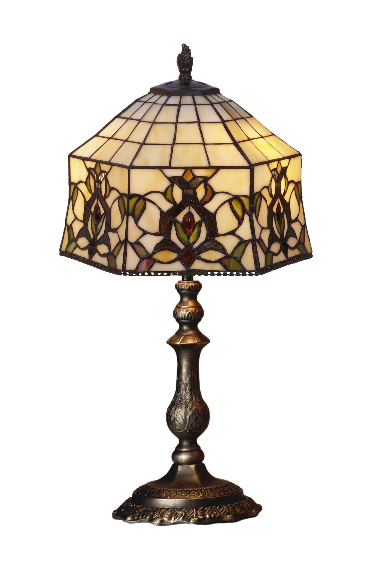 d.30cm Lámpara de mesa mediana Tiffany con base clásica Serie Hexa 2 luces