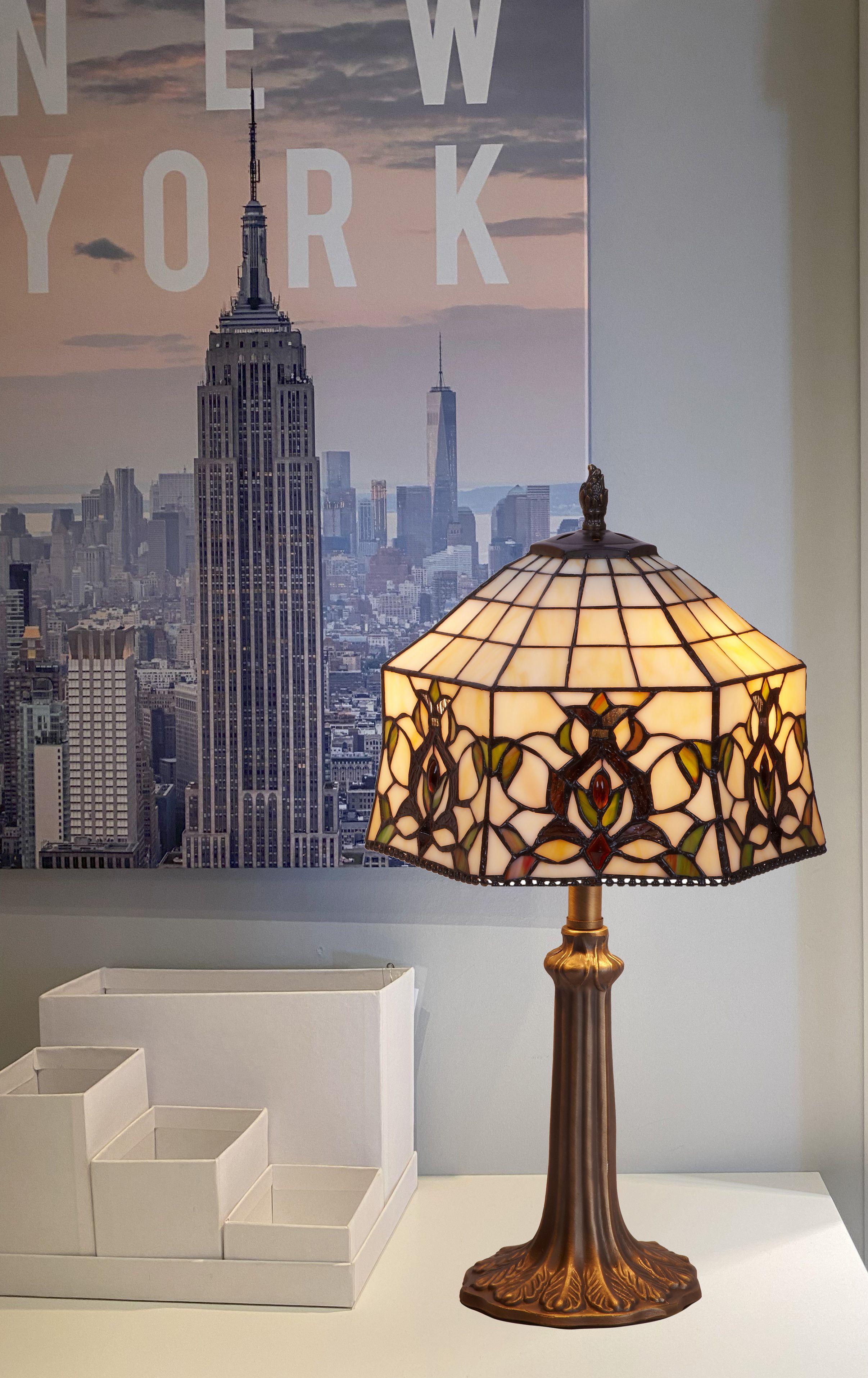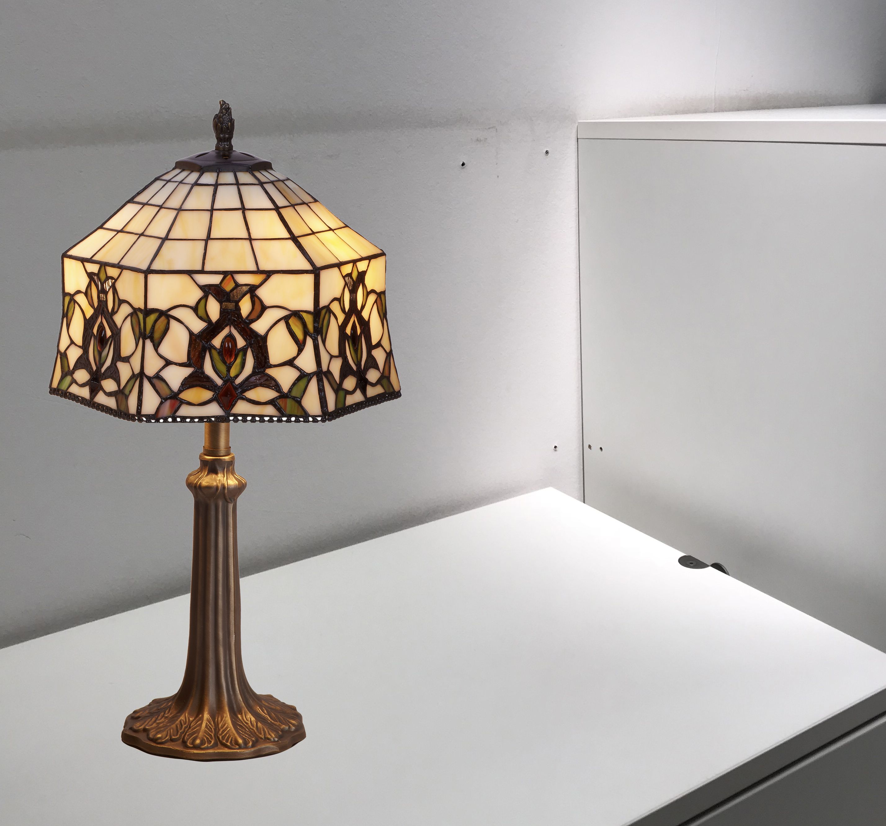 d.30cm Lámpara de mesa mediana Tiffany con base forma árbol Serie Hexa 1 luz