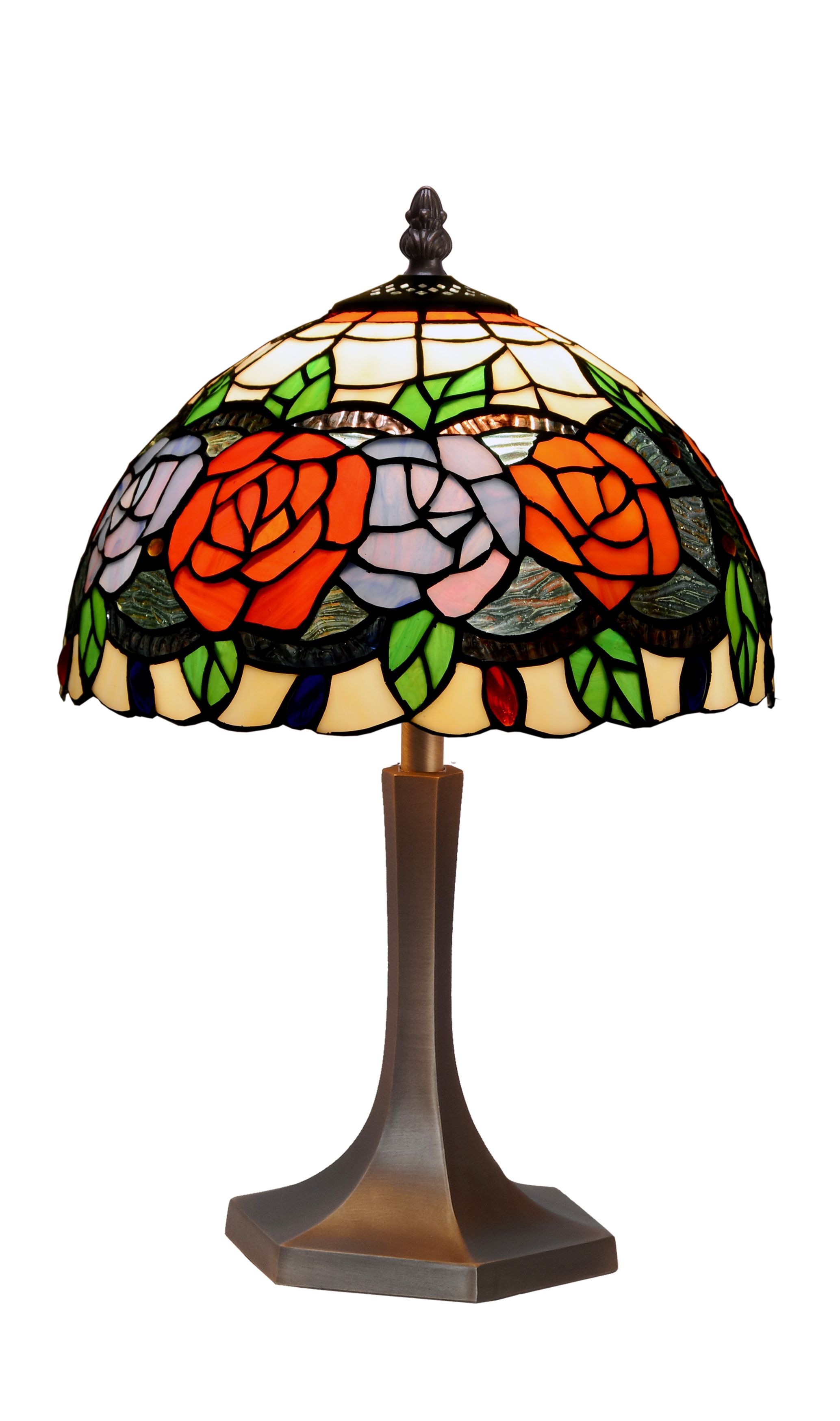d.30cm Lámpara de mesa mediana Tiffany con base hexagonal 2 luces