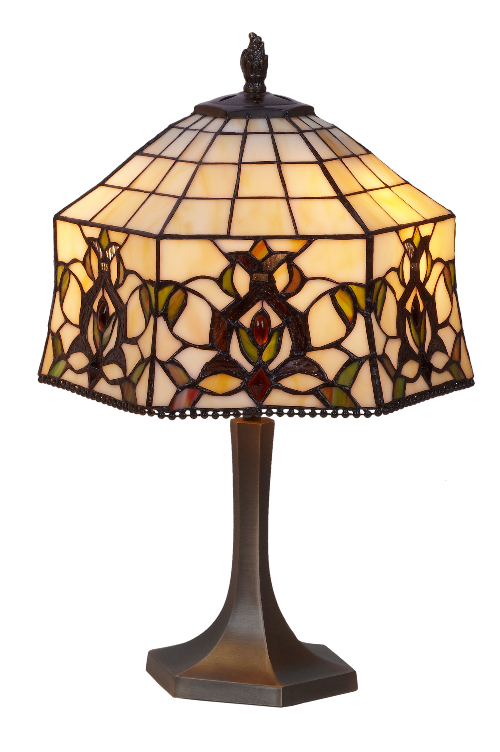 d.30cm Lámpara de mesa mediana Tiffany con base hexagonal Serie Hexa 2 luces