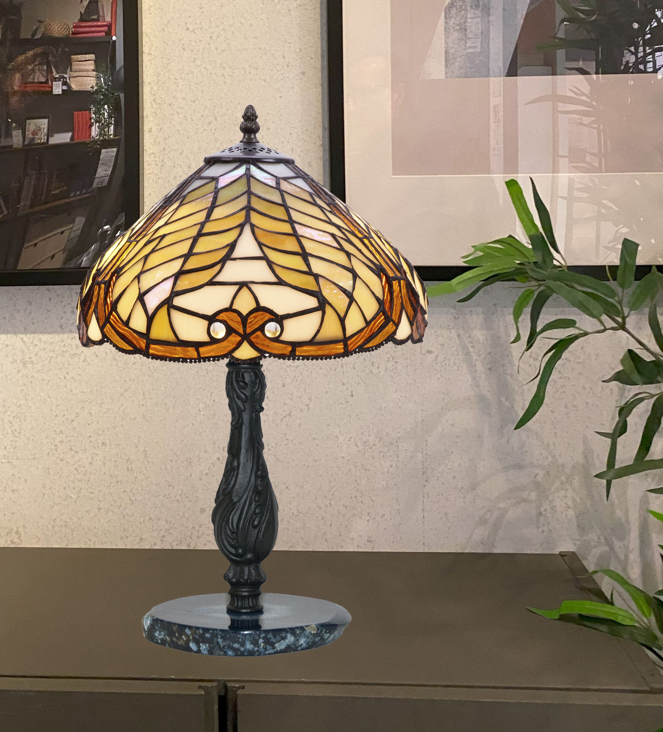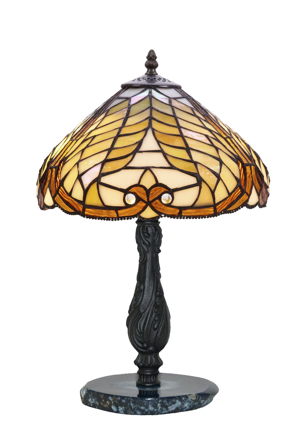 Clásicas pantalla estilo Tiffany con base en piedra semi-preciosa agata azul con certificado de reproducción del original numerado y montura para sobremesa. ATENCIÓN la piedra agata varia de la fotografía, son auténticas y siempre distintas aunque parecidas a la muestra de la foto. Ref.2386.64* D.30cm