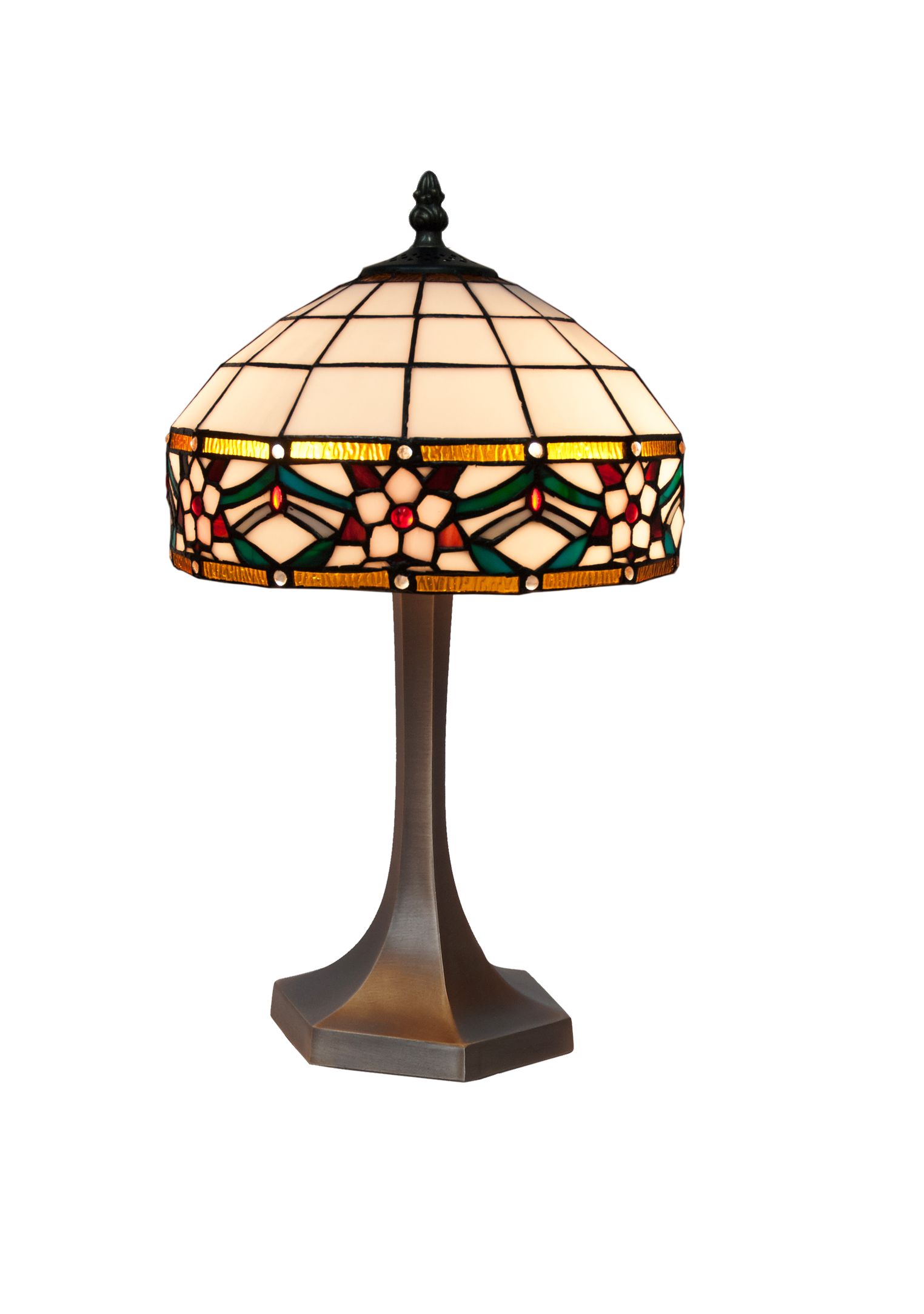 d.30cm Lámpara de mesa Tiffany y montura hexagonal Serie Museum 1 luz