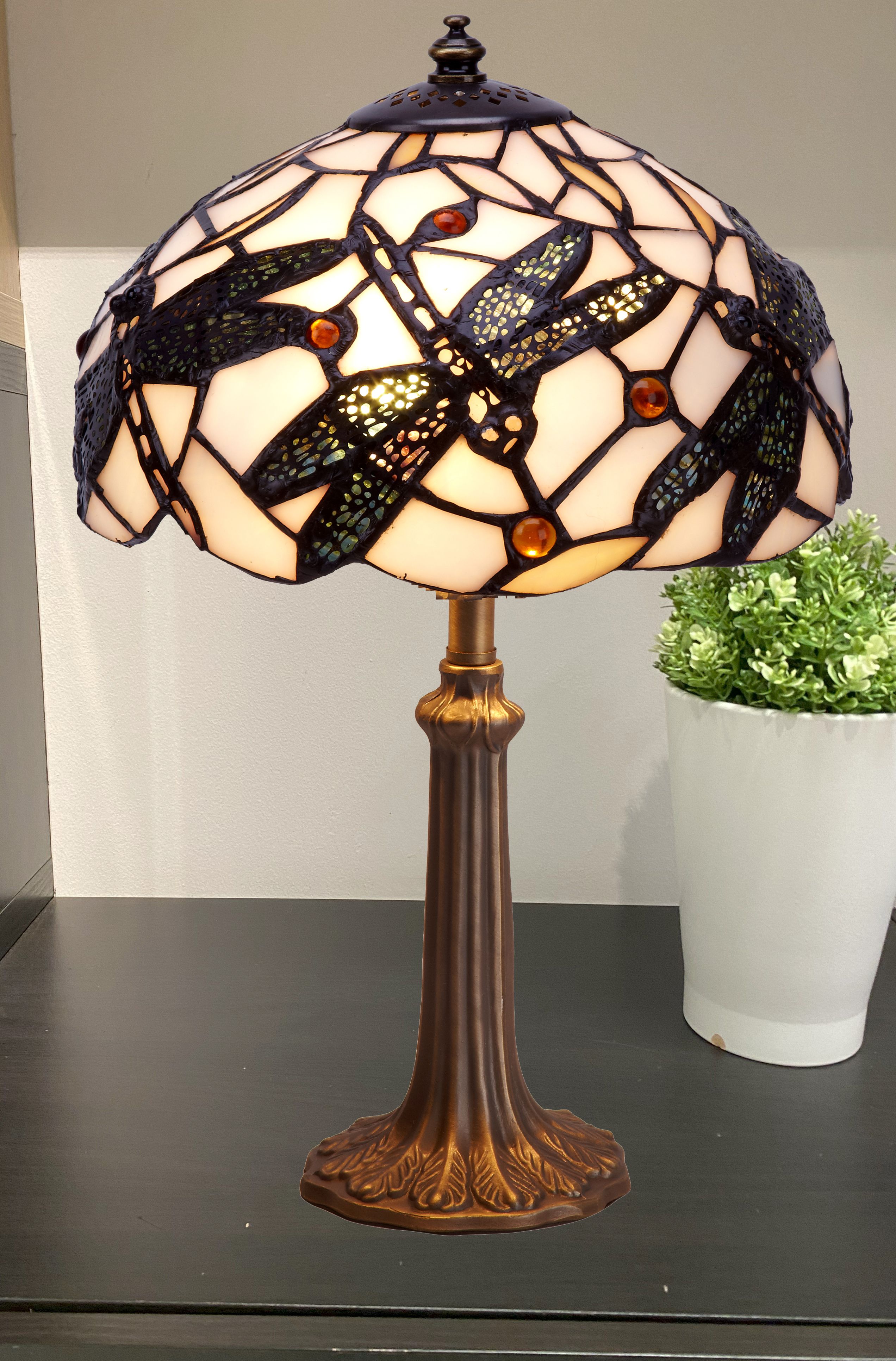 d.30cm Sobremesa mediano Tiffany con base árbol Serie Pedrera 1 luz