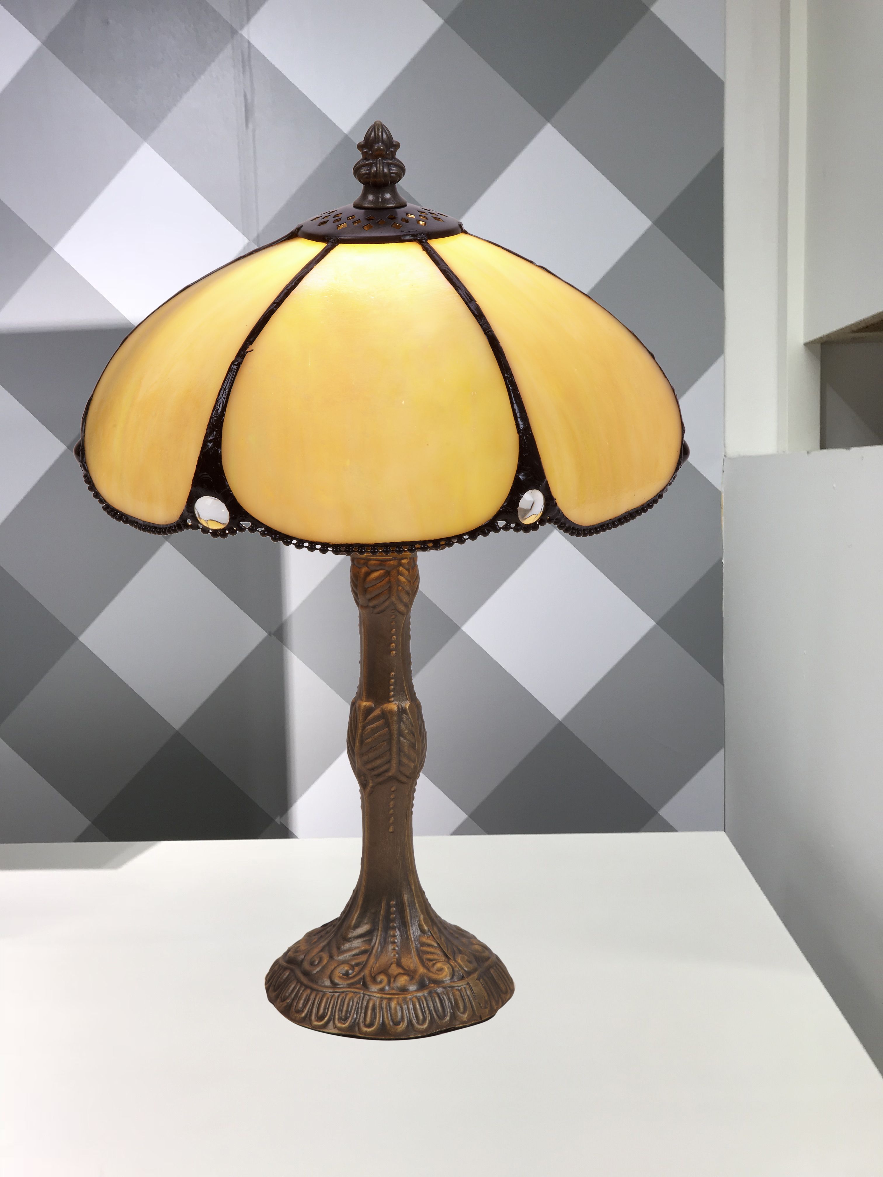 d.30cm Sobremesa Mediano Tiffany con montura zinc Serie Virginia 1 luz