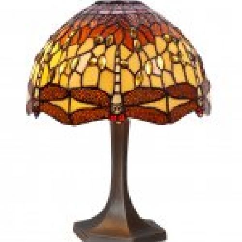 d.30cm Sobremesa Tiffany con base hexagonal Serie Belle Amber 2 luces