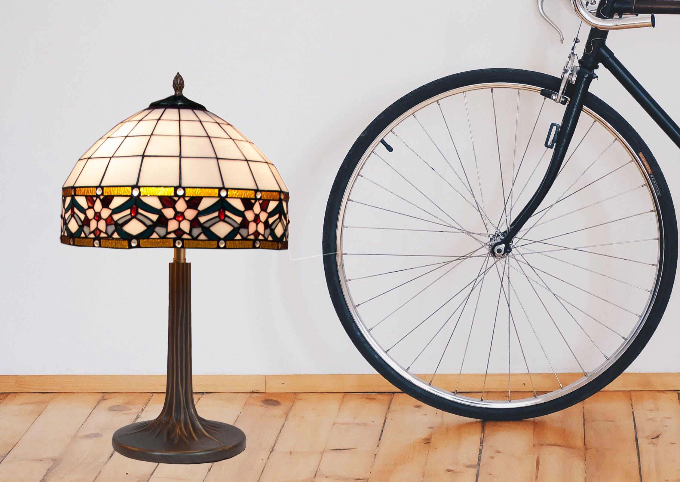 d.40cm. Lámpara de mesa Tiffany con base árbol Serie Museum