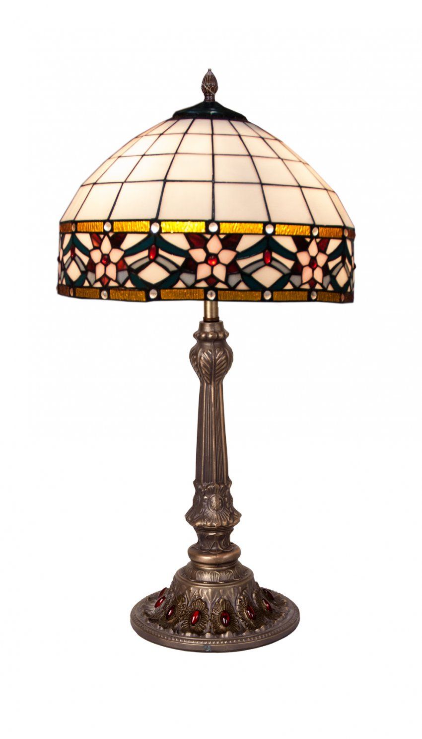 d.40cm. Lámpara de mesa Tiffany con base con opalinas de cristal rojas Serie Museum