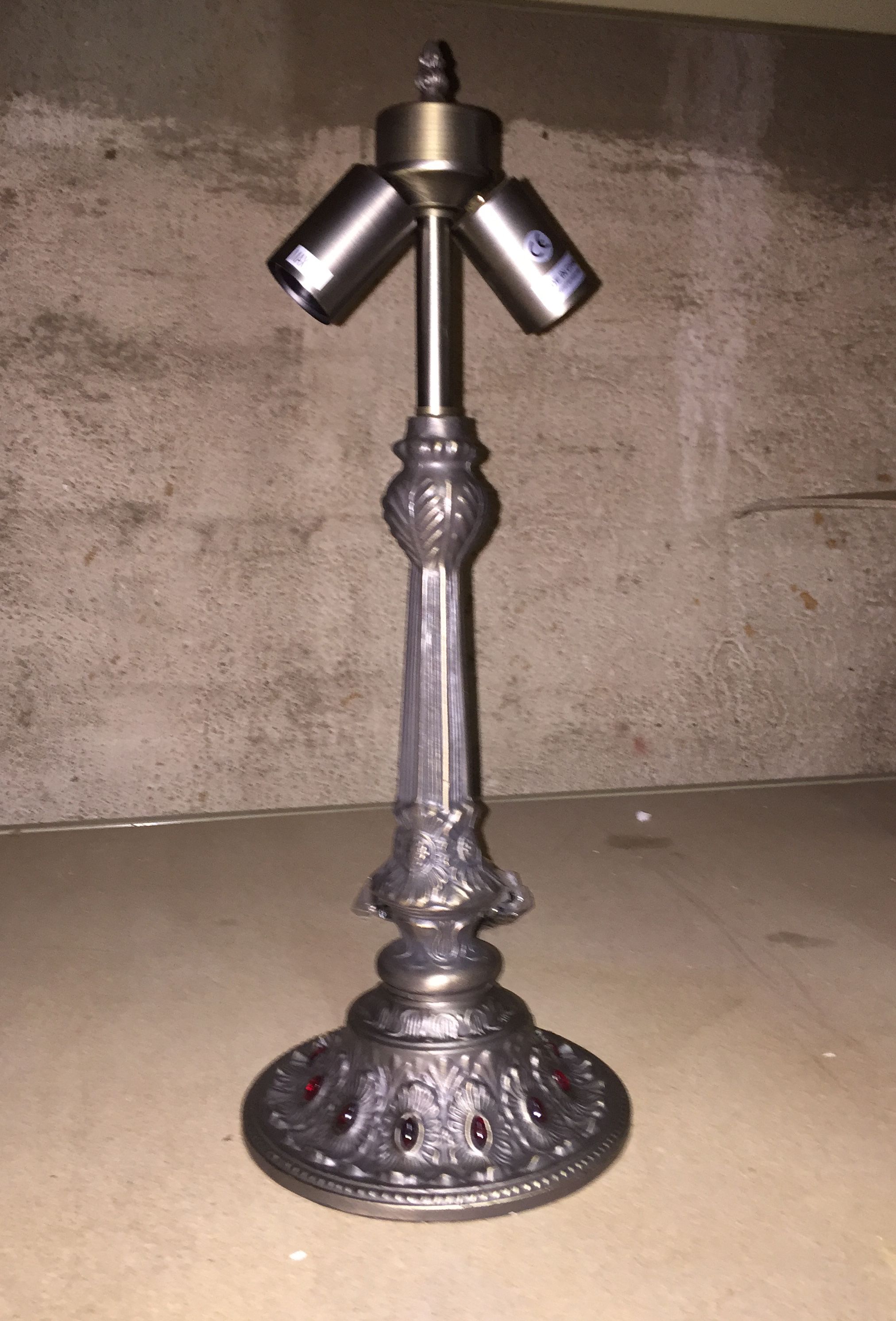 Montura aleación de zinc con opalinas de cristal rojo. Altura 58cm.