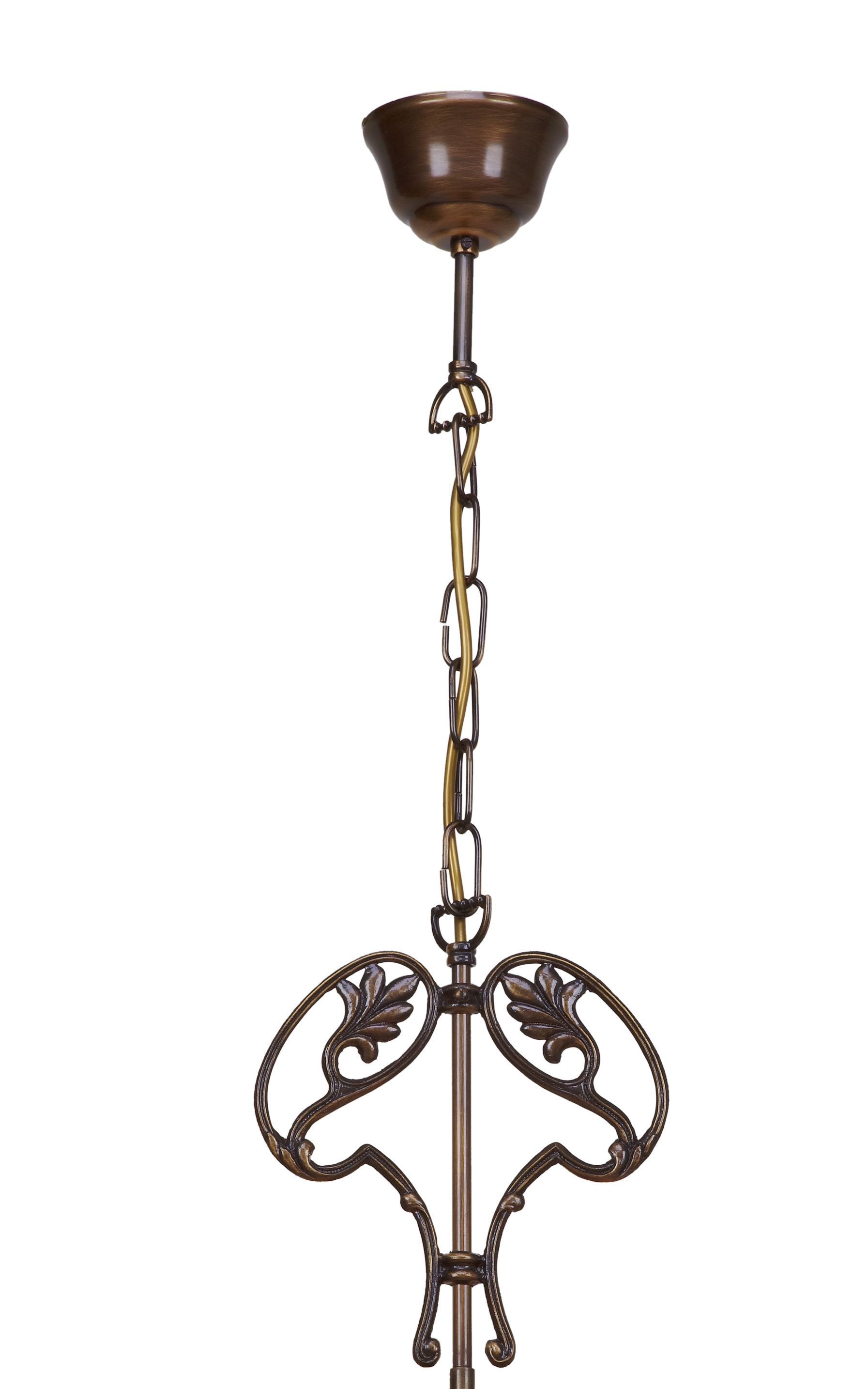 Lámpara colgante de techo con montura adorno de fundición. Altura 40/140cm.