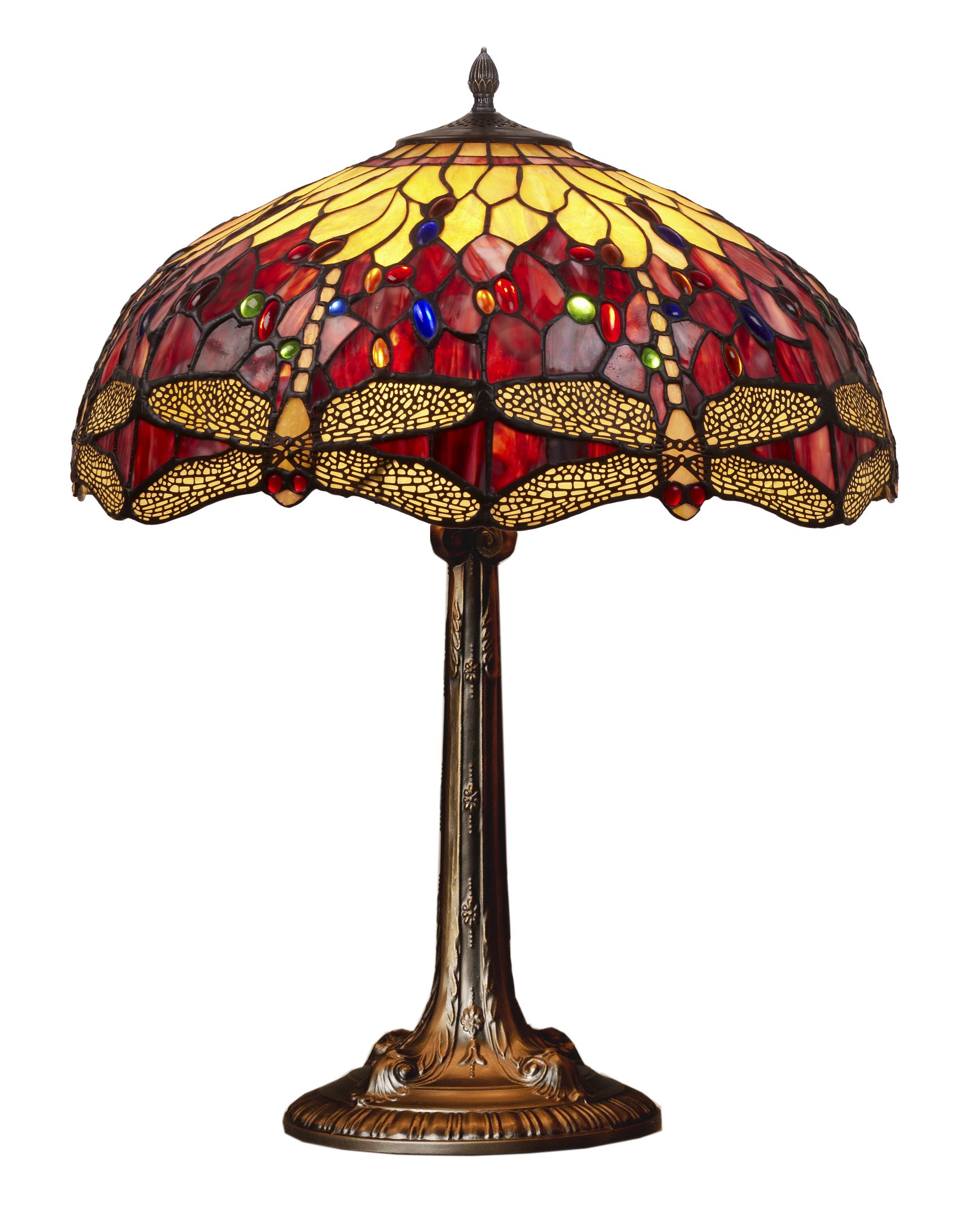 Ref.2033.21 D.54cm Clásicas libélulas en pantalla estilo Tiffany azul con certificado de reproducción del original numerado y montura para gran sobremesa.