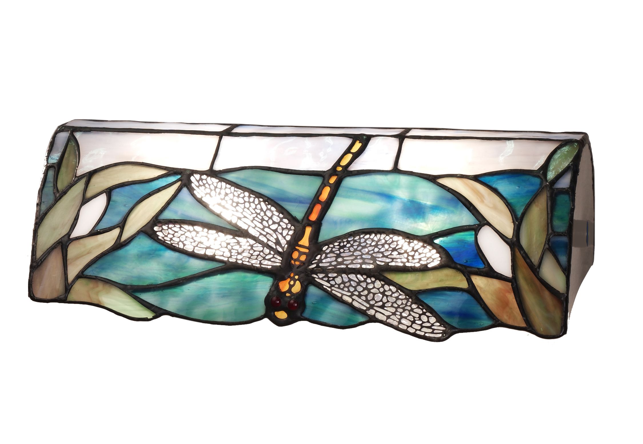 Pantalla Tiffany colores azules ancho 32cm alto 10cm.